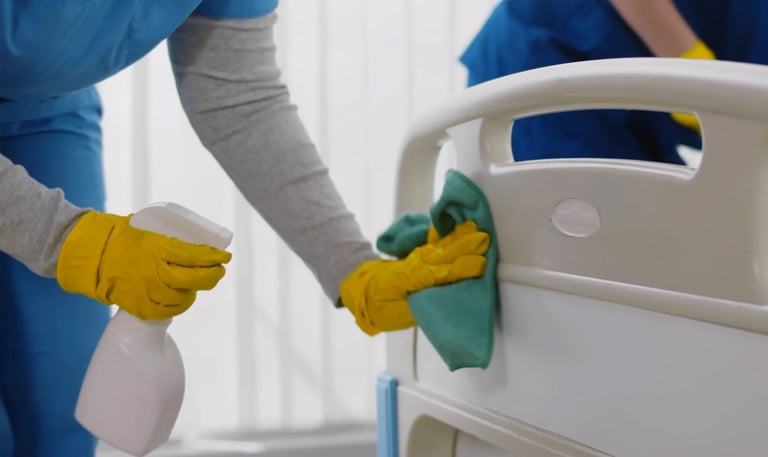 Serviço especializado com foco em higiene rigorosa e desinfeção adequada, garantindo ambientes seguros para profissionais de saúde e utentes.
